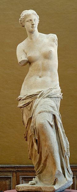 著名的「斷臂維納斯」古希臘雕像藝術作品,也被稱為米洛的維納斯(ミロのヴィーナス),其原本的雕像在西元1820年發現於希臘米洛斯島,所以被稱為米洛的維納斯,目前真跡收藏於法國巴黎的羅浮宮內。