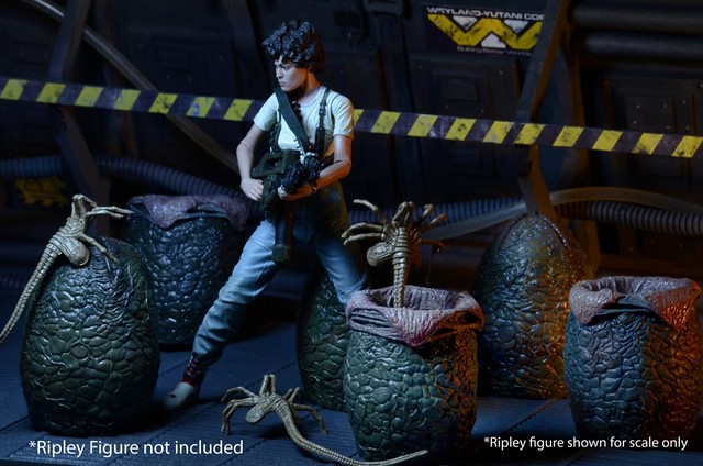 這次的「異形蛋」收藏組,由名產地「LV-426」新鮮直送(大誤),將包含了開╱閉 2 種異形蛋各三顆;其中張開的異形蛋還附有恐怖的異形幼體“抱臉者”(facehugger),尺寸可與NECA所發行的其它可動玩具相符。噁心的塗裝加上逼真的造型,完全中實地傳達了原作中異形生物的恐怖氣息,絕對是此系列愛好者必備的精彩作品!