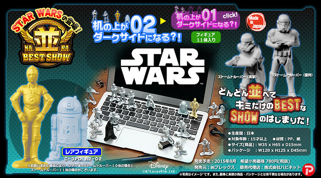 『机の上がダークサイドになる?』(讓桌上陷入黑暗面?)系列作品一共4種款式(黑武士×2,R2-D2 與C-3PO),每款內附有10 隻迷你人偶與一款稀有人偶。能夠輕鬆地展現《星際大戰》黑武士率領一眾帝國暴風兵出巡的精彩場面,絕對值得星戰迷入手的小品系列!~