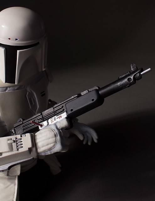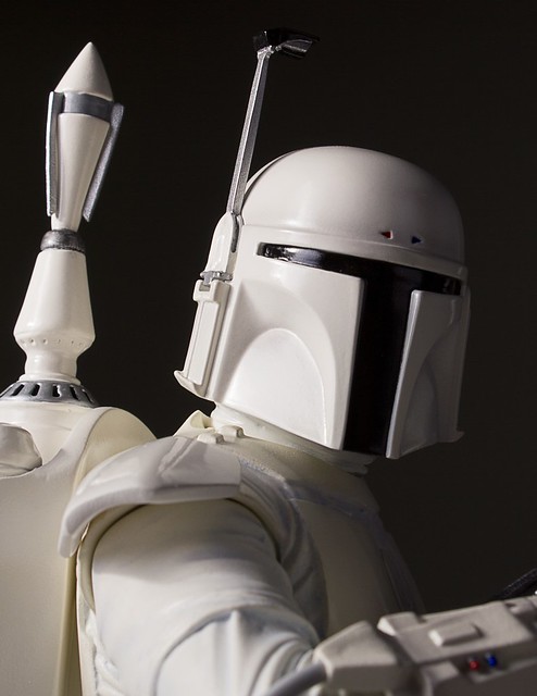 與黑武士以及白兵一樣,「波巴.費特」也有廣大的粉絲支持,其中又以其盔甲的設計,被視為是一個經典之作。這套盔甲的設計,最初是由Ralph McQuarrie 與 Joe Johnston 繪製了概念圖,用於做為帝國的強力兵種「Super Troopers」的設定上。後來在1978 年06 月28 日,星際大戰的音效設計師Ben Burtt 與製片助理Duwayne Dunham 公開了「波巴.費特」的造型測試影片,將概念圖立體化,當時的盔甲還是全白色系。而後有許多廠商也紛紛將這套白色的波巴.費特盔甲作品立體化。