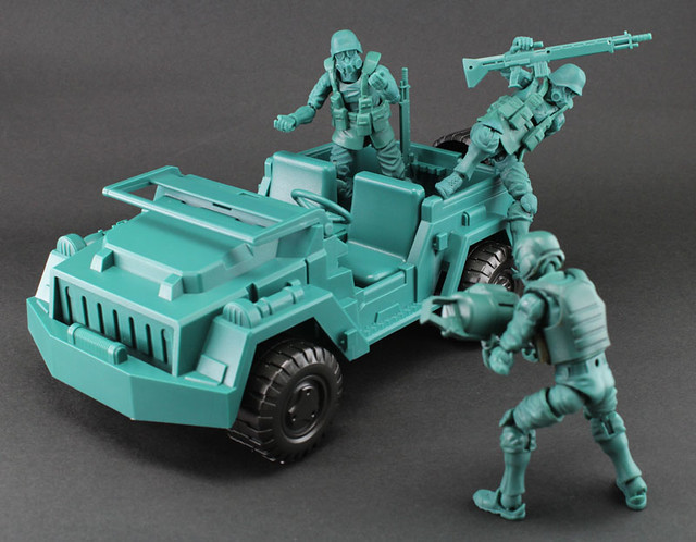 延續了復古懷舊的綠色小兵設計,2015 年度的會場限定品Green Jeep + Green Commander 套裝組合,將附有一款綠色小兵風格、全新設計的軍用吉普車,以及一位指揮官,並豪華地搭配了手槍、衝鋒槍、火箭筒與格林機槍做為武器配件。除了可以實際擺放人偶駕駛之外,副駕與後車廂的空間還能夠搭配去年的3隻士兵組合包,一次乘載三位士兵,並且附有槍架能夠收納武器。