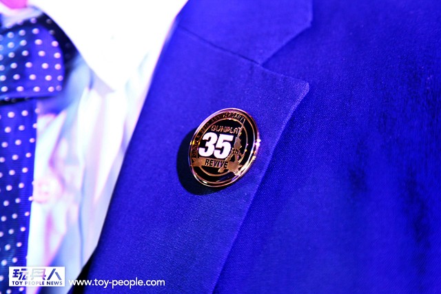 ▼ 途中我們遇到了一位BANDAI 模型事業部的相關人士。這個金色的35週年紀念別針,只有相關的重要人士才有!(好羨慕啊~)