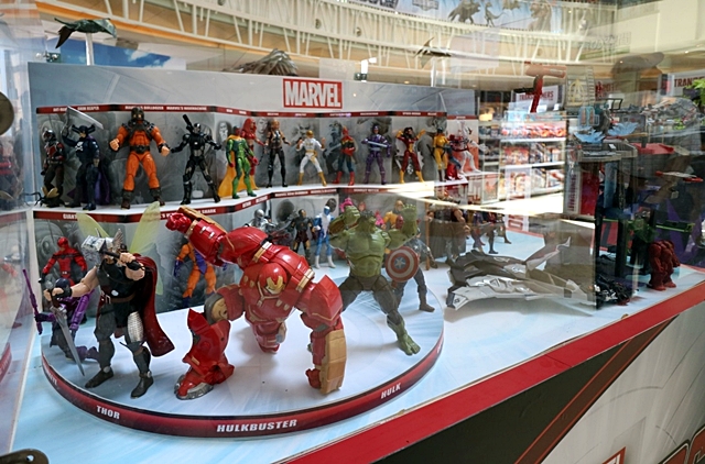 其中更可看到合體金剛玩具的超強創意,從車輛變形過程到為合體金剛,一氣呵成。另外旁邊還有今年度最熱門的侏羅紀電影商品情境區展示,可看到帝王暴龍與英雄暴龍最終之戰; 漫威部分也展示了今年度6吋傳奇人物系列的角色群,從復仇者聯盟、蜘蛛人到蟻人系列,其高可動性與精緻化塗裝,一直是玩具人向大家推薦的玩具商品,這裡都可以仔細地觀賞實品,昨天發布的新品介紹的浩克毀滅者,今天就在這裡用超高難度的鋼鐵高跪姿出現,這裡也是全台首賣的地方,建議大家直接整套買,才能馬上把玩這難得的好玩具。