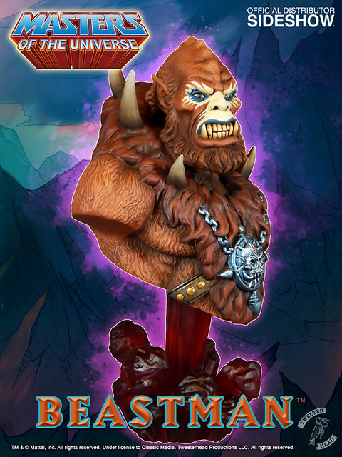 歐美玩具品牌Tweeterhead 公司,繼日前推出了經典動畫、暢銷玩具系列「太空超人」(HE-MAN)中經典的大反派「骷髏王」(Skeletor)的1/4 比例半身胸像作品之後,這次將要推出的是骷髏王重要的左右手「獸人」(Beast-Man)角色的1/4 比例半身胸像作品。身為大反派骷髏王最得力的助手,也是有兩把刷子的,獸人擁有控制兇猛野獸的能力並且本身也有著無窮的蠻力。喜愛太空超人的玩具人不要錯過這難得的反派角色作品啊!