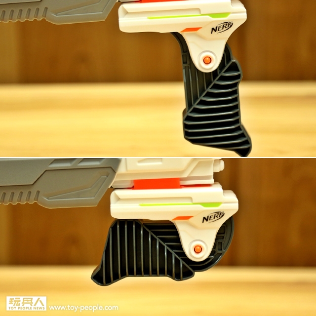▼ 第三個則是“護木握把”(Drop grip)。與槍托相同,握把提供了更好的姿勢穩定性,藉以提昇命中率。