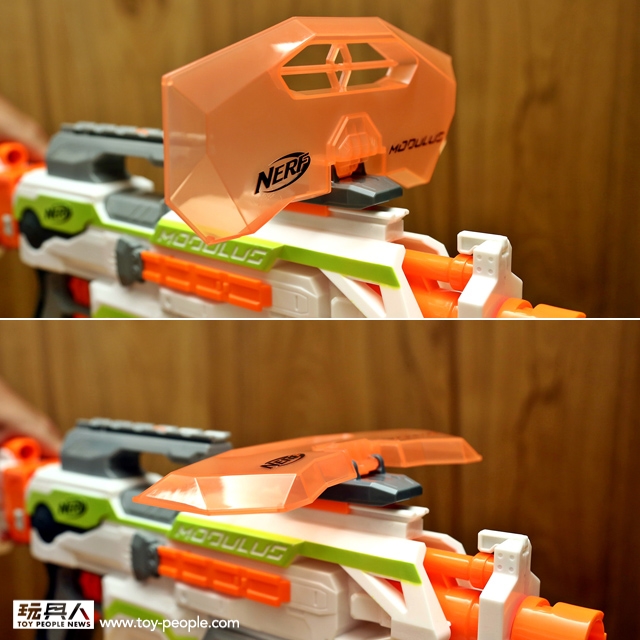 ▼ 防衛用套件附屬的是一個半透明的護盾,保護瞄準時的臉部不易被射中。不需使用時,也可以將護盾收起,非常的便利。