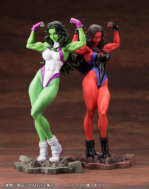 壽屋公司旗下很有名的MARVEL 美少女系列作品,曾經推出過「女浩克」的1/7 比例全身雕像作品,而這次則是推出紅色版本的女浩克作品。而從綠色換成紅色之後,這款作品的凶狠程度似乎又提升了不少。有收藏之前推出女浩克作品的玩具人不要錯過這次SDCC 限定的「紅女浩克」版本囉!