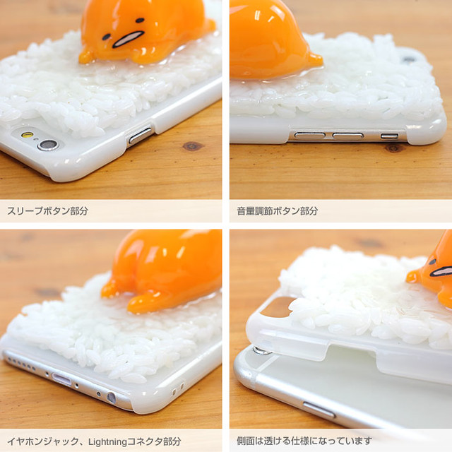 這一款『蛋黃哥雞蛋蓋飯手機殼』,使用了日本相當自豪的食物樣品技術(食品サンプル),來呈現日本人喜愛的生雞蛋蓋飯,並且結合人氣角色「蛋黃哥」,打造出相當生動、別緻的特殊手機殼。藉由特殊製作技法,粒粒飽滿、分明的白米飯,看起來就像是剛煮好的熱騰騰模樣;澆在飯上的「蛋黃哥」,充滿Q彈力的橘黃色澤,加上了透明的蛋白來包覆,完全就像是真的生雞蛋!