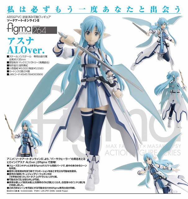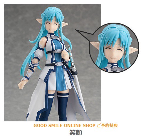 故事劇情中對於料理非常拿手的亞絲娜終於也以figma可動系列來呈現了,所持有的武器是白色劍身的細劍「閃爍之光(ランベントライト,Lambent Light)」,能使出連桐子也看不清的高速高準度連擊,而擁有「閃光」這個稱號,商品附有其武器、魔杖和兩款可以替換的顏部表情配件等等,在GOODSMILE ONLINE SHOP線上商店訂購附有"笑顔"特典配件,提供給喜歡《刀劍神域》系列的玩具人參考。