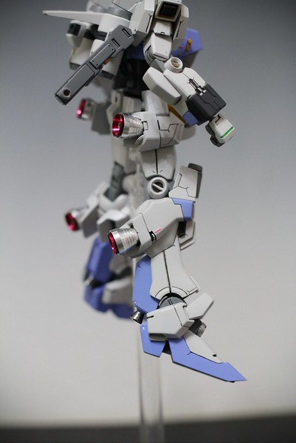 哈~由於這台外型有點樸素,體積有點小,所以注重在細節部份外表的加強,像是運用了一些彩光貼,金屬噴孔,雷射貼紙等等讓細節部份更精密,增加這小型機體細膩度及可看性,另外製作了一個浮空的壓克力地台配合宇宙用機體…….