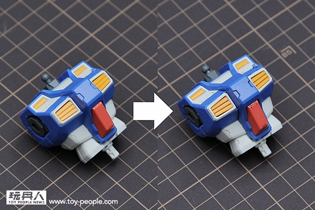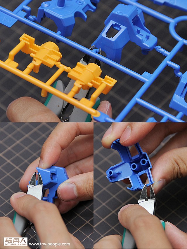 ▼ 接著就讓我們開始製作吧!一樣要零件的剪裁使用兩段式剪裁法。但是,因為GP04G有設計隱藏式湯口,所以就需要多剪一刀,才能順利組裝喔。切記,零件組裝一定要先把湯口處理乾淨再組,千萬不要沒有剪乾淨就硬裝,這樣可是會造成零件受損。