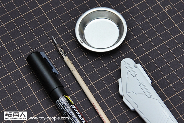 其實若是沒有要大量筆塗,而鋼彈麥克筆又有你想要的顏色,選擇已經調好比例的鋼彈麥克筆是還蠻便利的選擇。使用鋼彈麥克筆時,可不要直接開筆就塗,還是需要先準備好畫筆跟調色皿。