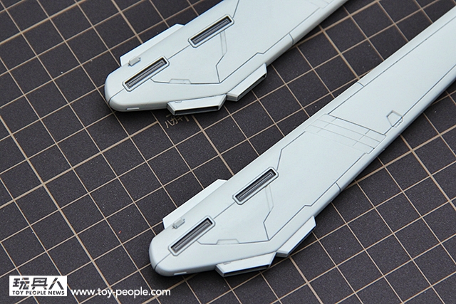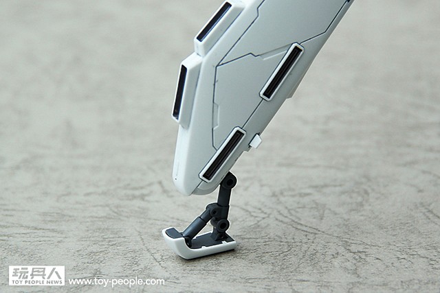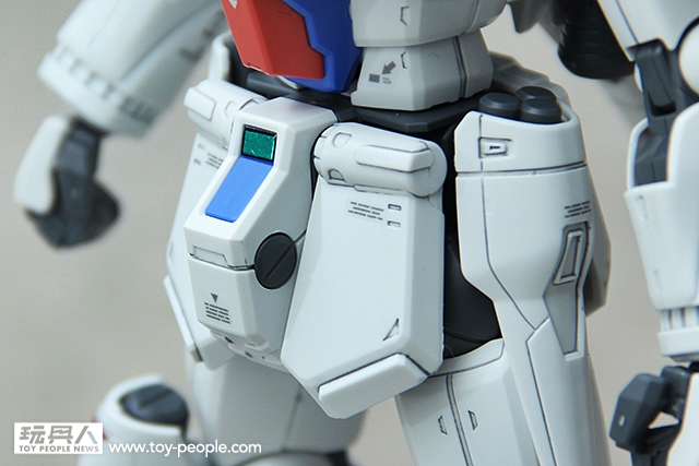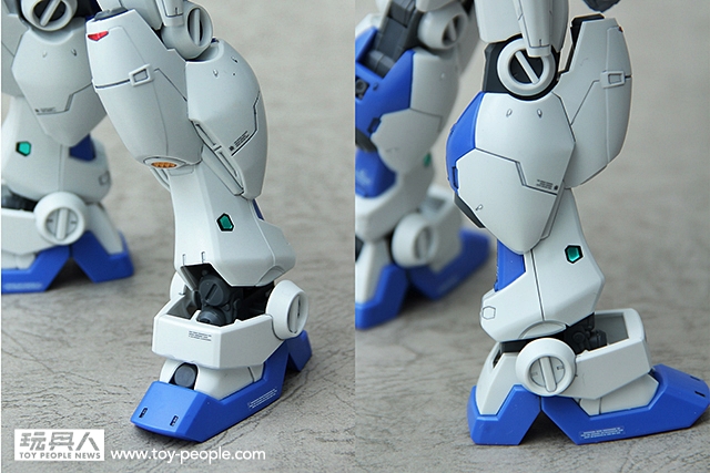 ▼ 腿部的設計,也是非常的有型。簡單的線條讓GP04G看起來更有強壯感外,推進器的配色點綴以及感應裝置的反光綠貼讓GP04G有更強烈的自我風格。同時腳踝的設計,讓身為RE/100系列的GP04G有超乎我們想像的可動性。