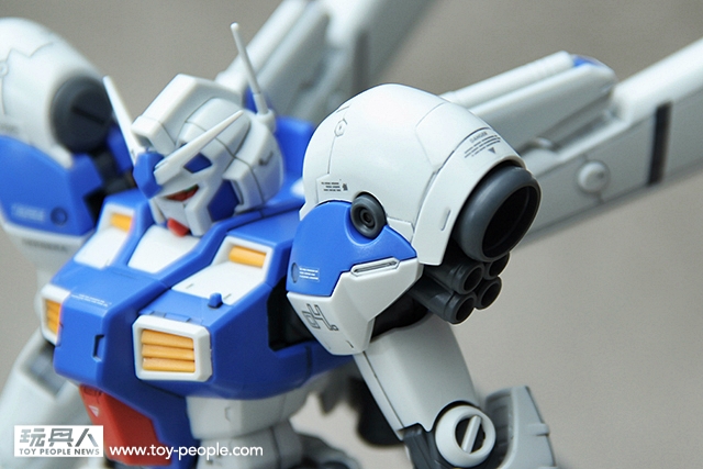 ▼ 像是這個肩甲的部分,因為也是要設定為對MS用戰鬥時的高機動作戰強襲用機體,所以跟GP01一樣也加裝了推進器。但卻也不同的方式來呈現。兩者均有各自的美感。