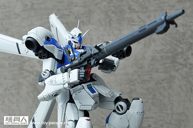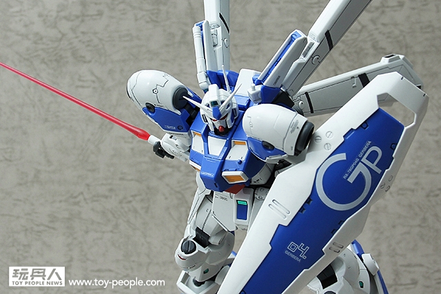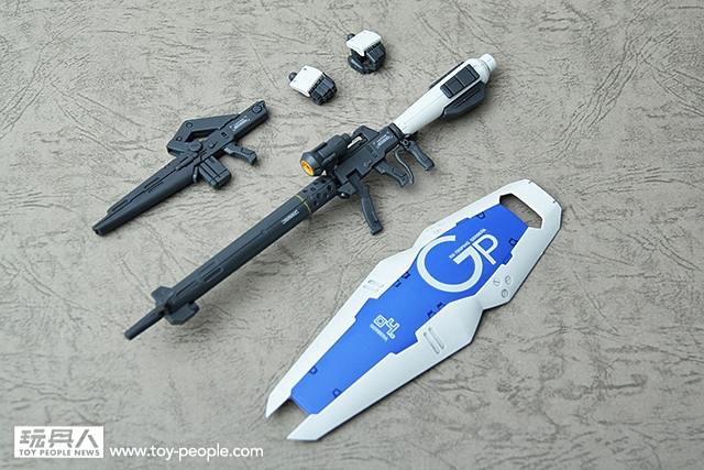 ▼ GP04G的武裝,除了有基本的盾牌之外,還附有兩把槍。一把是光束步槍,另一把是從GP01衍伸過來的遠距離用高出力光束步槍。特別是這把長槍在握把的設定非常的寫實,令人印象深刻。