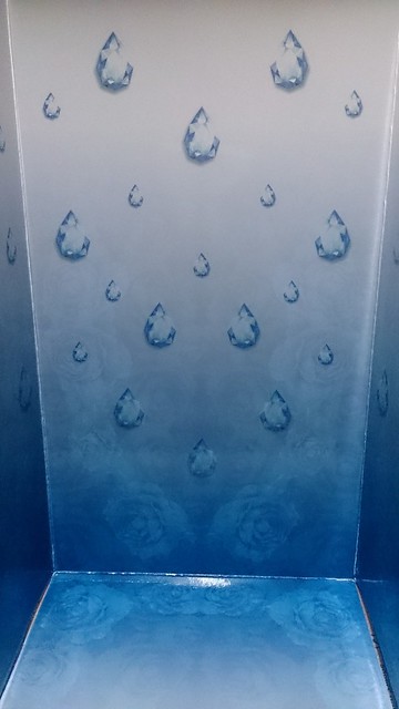 ▼背景是包裝盒裡的內襯,可以抽出,由淺入深的藍色變換與水晶和薔薇的搭配有著相當簡約的風格,也被利用為接下來拍照時的背景。