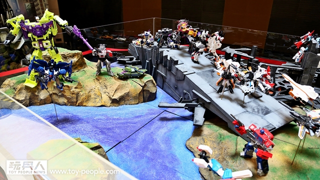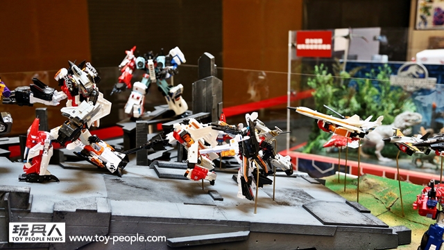 ▼ 除了DMK03之外,密斯特喬也製作了大型的“合體金剛”戰爭場景組。博派、狂派從載具型態變形為機人,最後合體的動態好讚!在家也想這樣擺設的話就得買三套才行啊...(淚)