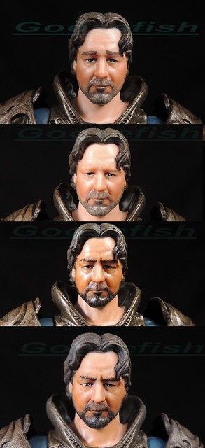 加深之重點部位:眉毛、眉間、眼框、嘴 眉毛重畫。 我覺得下面照片可以看得出來噴消光漆對臉部質感的影響 |