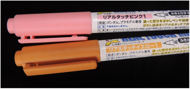 | [1]先將眼睛跟眉毛擦掉後用面相筆塗眼白 [2] 利用鋼彈筆增加膚色層次感,加深之重點部位: 眼睛周圍先用鋼彈筆畫個大概之後再利用棉花棒抹開,細部塗抹則利用牙籤抹開或修飾畫錯的地方,顏色使用黃色及粉紅色為主。 ![]()