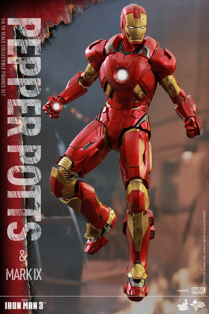 這一款套裝組合,將附有一款《鋼鐵人3》中造型的女主角“小辣椒”維吉妮雅·波茲(Virginia Potts)的1/6 比例人偶,以及一款鋼鐵人馬克9。在與齊禮安最終決戰,小辣椒利用他的絕境病毒能力打倒齊禮安之後,因為其病毒而遭到了鋼鐵人馬克9 瞄準、企圖殲滅。結果小辣椒不僅抵禦了馬克9 的攻擊,還以東尼為跳台,一越而起踢爆了馬克9。