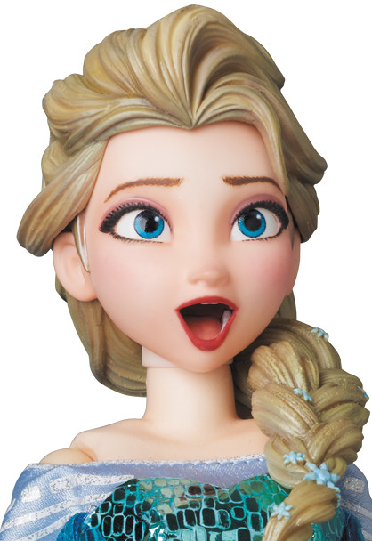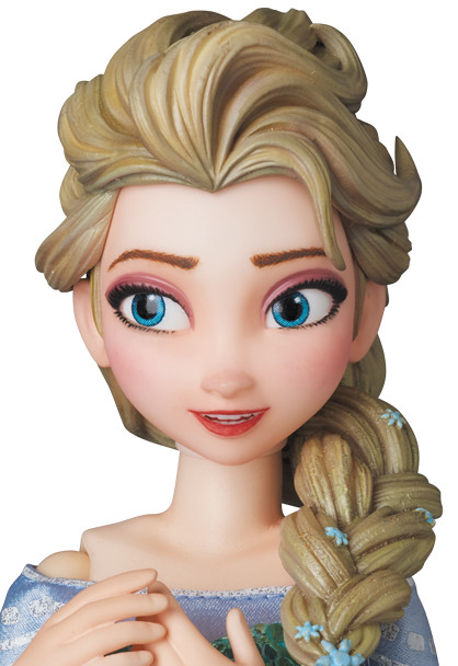 今次以PVC材質來製作愛莎的頭部,完全再現動畫圖像中的模樣,在眼睛是可移動式和附有三種類可以替的臉部表情配件,可以因應各種情緒來改變其臉部表情,和多款不同手首配件可以更換等等,服裝也完全再現劇中當中的造型,內置了RAH女性素體全身都有可動關節,可以隨著自己的心情來擺放不一樣的姿勢,和附有支撐架等等,喜歡《冰雪奇緣》的玩具人千萬別錯過囉!