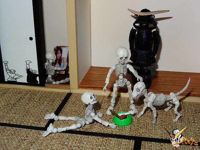 為大家分享骷髏人實境秀。忙碌壓力大的現代生活,療癒系商品正夯。可愛不可怕的骷髏人,簡單擺出各種不同的姿勢,加上各式配件可以玩出各種不同風格。有男女不同骨架及小孩骨架,另外還有寵物小狗的骨架,剛好可以組成一個小家庭。有了家庭當然要有個家,一個小型和室剛好可以打造一個家,裡頭可以放入更多不同配件,只要比例適當也能放入不同系列的玩具,發揮創意變化無窮好玩有趣,如果是您…會為骷髏家族打造甚麼樣的家呢 ?