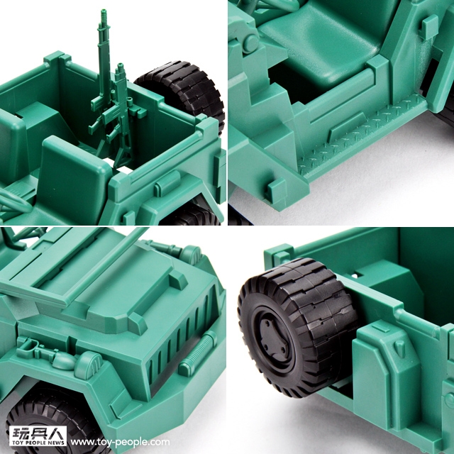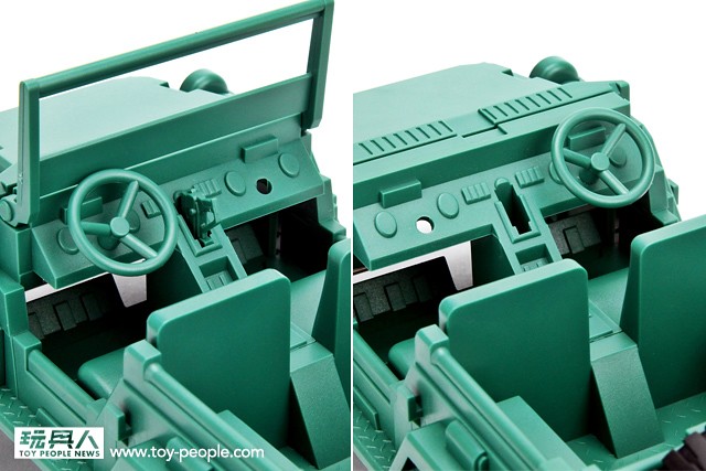 ▼ 另外,為了方便收納,綠色小兵腳底下的底板可以收藏在吉普車底下~ 這樣就不容易弄丟啦!真貼心的設計啊!