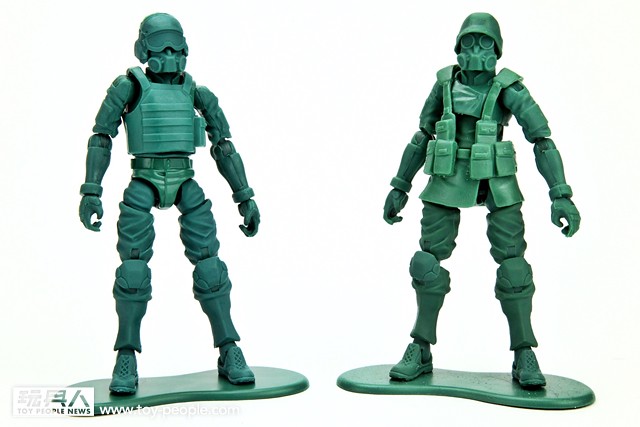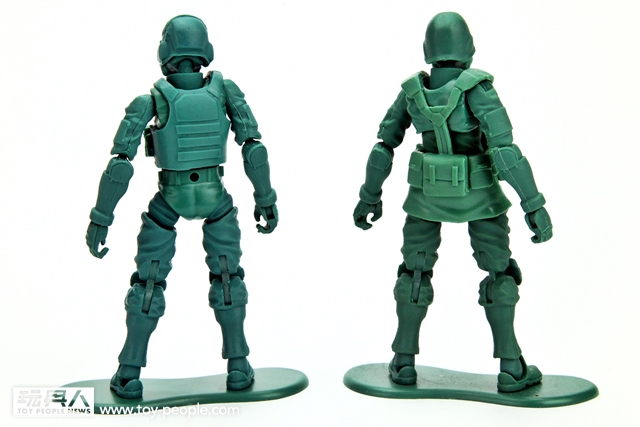 ▼ 限定版綠色人偶比一比!左邊是2015年度限定的綠色小兵指揮官,右邊則是2014年度限定的一般綠色小兵。 各位玩具人有沒有留意到,這次的指揮官顏色與一般綠色小兵不太一樣呢? 具設計師Kit 的說明,那是因為早期在80年代時所販售的綠色小兵,因為當時技術不成熟,偶爾會出現像這樣綠色不均勻、偏藍的人偶。設計師Kit 連這個細節也注意到,所以刻意推出這樣顏色不均勻的版本喔! 沒想到這樣的設計都注意到,好用心啊...