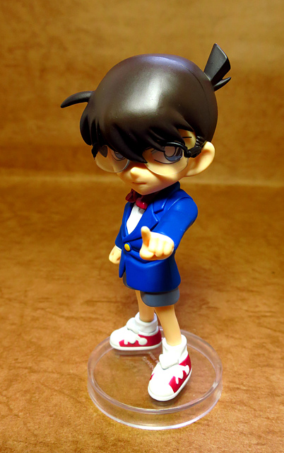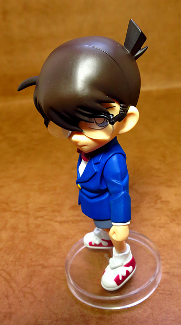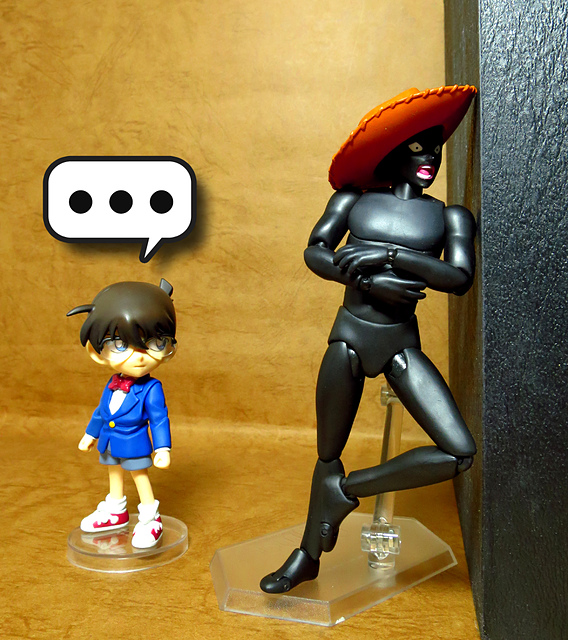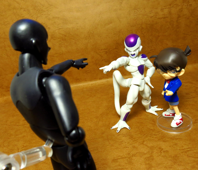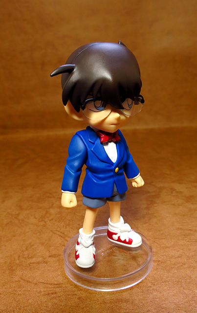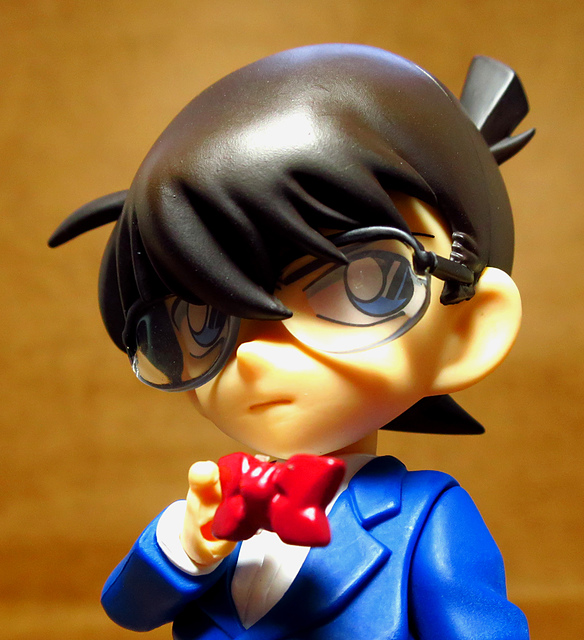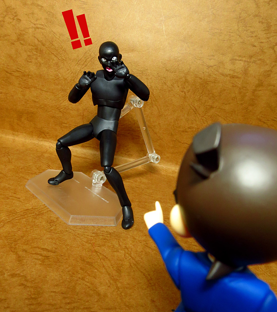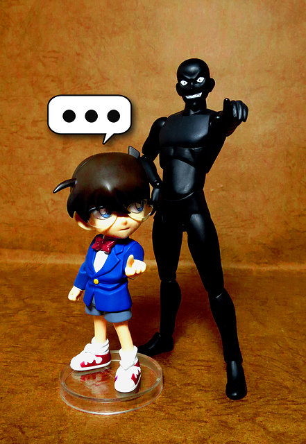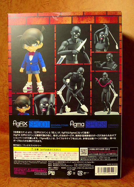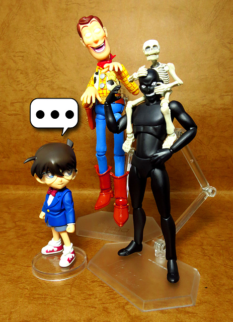 與其說「名偵探柯南」是部推理漫畫,不如說它是一部「魔術漫畫」,只不過,魔術師的角色,從黑羽快斗變成了一個又一個的兇手,魔術的表現則變成了一次又一次詭譎的殺害手法,之所以這麼說,是因為讀者們永遠不知道柯南「獨家」發現的小線索或關鍵證據是什麼,我們總是在「沉睡的小五郎」登場之際被真相唬得一愣一愣的,猶如坐在台下讚嘆舞台上的耀眼魔術般,雖然沒有閱讀推理小說時那種參與感,卻還是期待著每一次的受騙,這...大概就是柯南系列最吊人胃口的賣點吧(笑)。話說回來,本次figma推出了「兇手附送柯南」的組合,真的讓人不禁會心一笑,一口氣收錄了登場率超高的兩個主角(疑?),再搭配上多樣化的兇器,可說是我心目中可動玩具期待度No.1的搞笑新星啊,話不多說,就請用力地賞圖吧!
