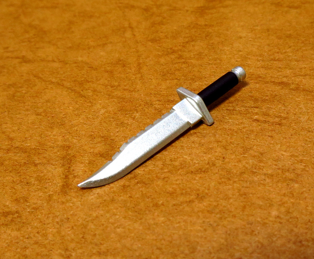 ↓ 兇器1號:藍波刀。刀柄的雕塑十分精細,刀尖也有相當的銳利度,請不要拿來刺別人的眼睛