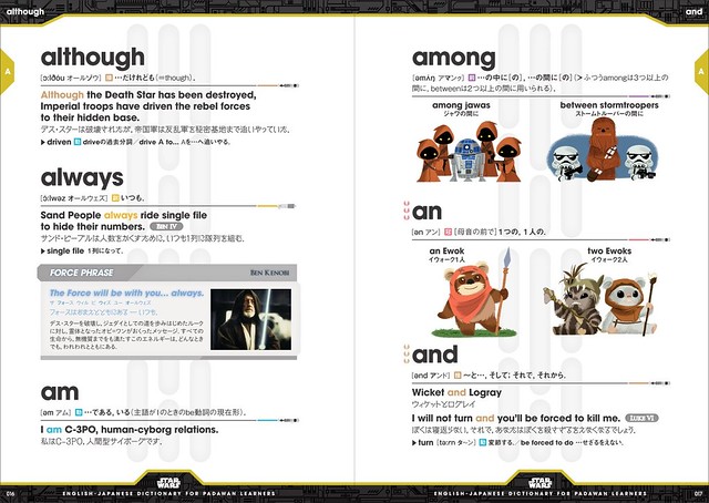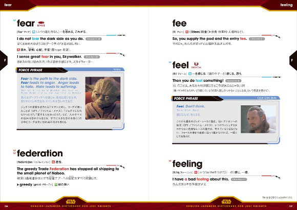這一本由日本出版社「学研教育出版」所推出的主題辭典,最大的特色在於活用了星際大戰的劇情內容來教授英文單字。有別於第一作是以國中生程度搭配舊版三部曲的內容來製作,續作的“絕地武士篇”是收錄了針對高中、大學程度的英文單字為主,搭配上星際大戰的世界觀毫無違合感啊!~ 除此之外,這次的“絕地武士篇”比前作追加了更多的插圖,更加生動有趣、更容易運用《星際大戰》的世界來學習!