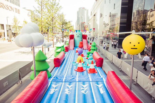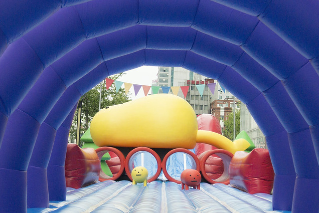 這次的「黏黏怪物運動會」活動,建構了一條長140 公尺的城市充氣跑道,跑道上分佈高達近百隻造型有趣的黏黏怪物的競賽選手,還設置不同的障礙關卡,包括滑梯、攀岩等,讓各位玩具人一起運動跨越障礙。有興趣的玩具人不妨至現場參觀一下順便大展身手一番吧!