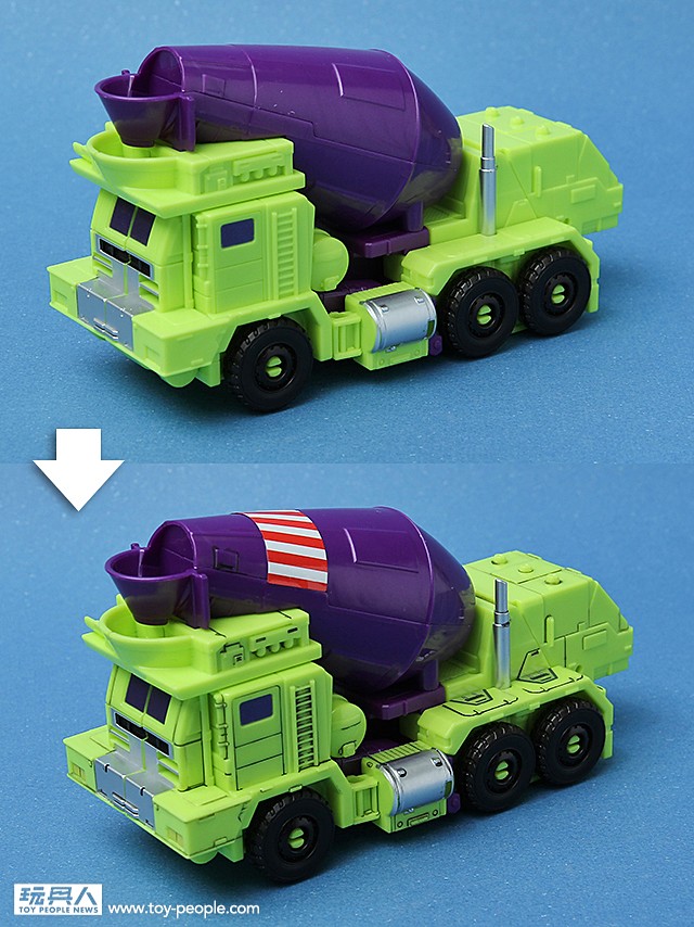 ▼ 第三組:左邊這位是原先是剷土機的隊長--廢鐵”(Scrapper);右邊這位則是從水泥攪拌車變形的化學及材料兵--攪拌器(Mixmaster)