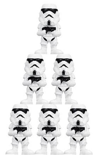 疊疊樂玩具「STAR WARS MANIA」每款將附有七款人偶,讓各位玩具人能夠盡情地享受疊疊樂、大閱兵、包圍情境...等各種主題,每款尺寸高約40mm,大量收藏也毫無壓力的小巧尺寸! 第一波將推出分別以「黑」、「白」命名的兩種版本;「黑」將收錄了一款黑武士達斯‧維德的人偶,以及六隻帝國暴風兵人偶;「白」則是收錄了C-3PO、R2-D2以及五隻帝國暴風兵人偶。