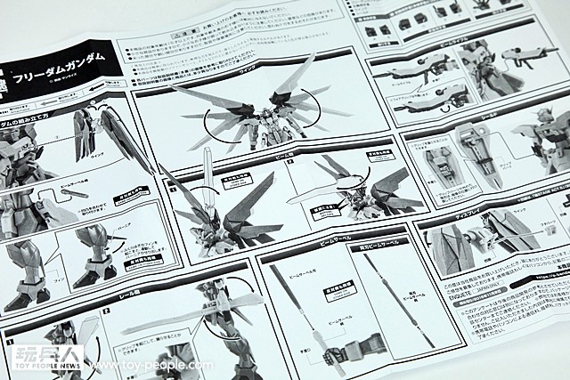 ▼ 由於「自由鋼彈」有著許多能夠變形的小配件以及背部推進器,所以說明書比較大張,詳細解釋了所有該注意的細節。把玩之前可要先好好閱讀,有些關節不小心轉斷就不好了!