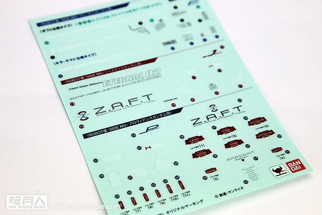 這次開箱的「自由鋼彈」附有特製的初回特典 - 裝飾貼紙! 這一張原創設計的特典貼紙,能夠裝飾機體,讓機體變的更加細緻、帥氣! 而且這一張貼紙還提供了其它部分,可以讓9月發行的「正義鋼彈」以及明年1月發行的「天帝鋼彈」裝飾。貼上去的效果真的超帥! 各位玩具人別錯過這個特典啊~
