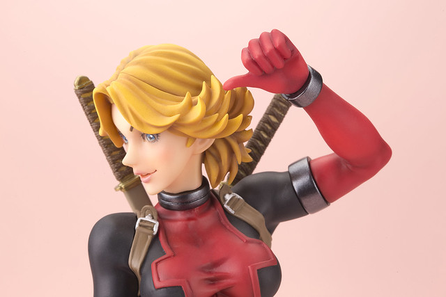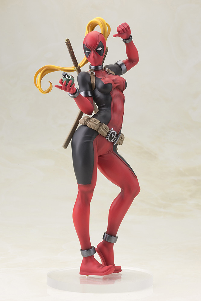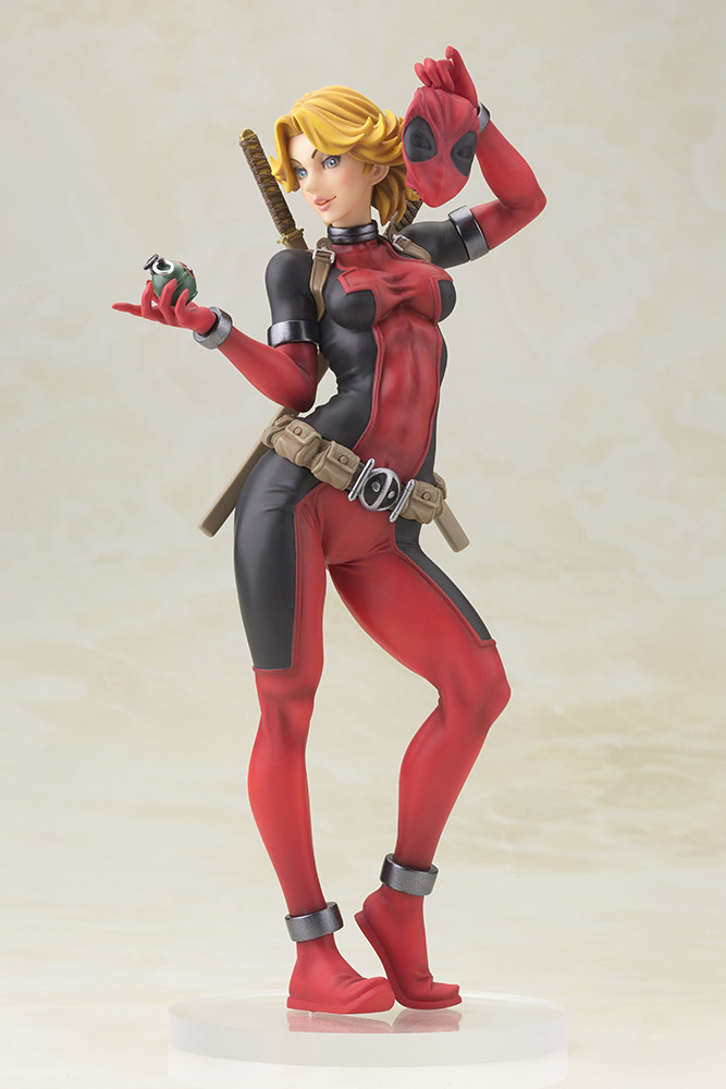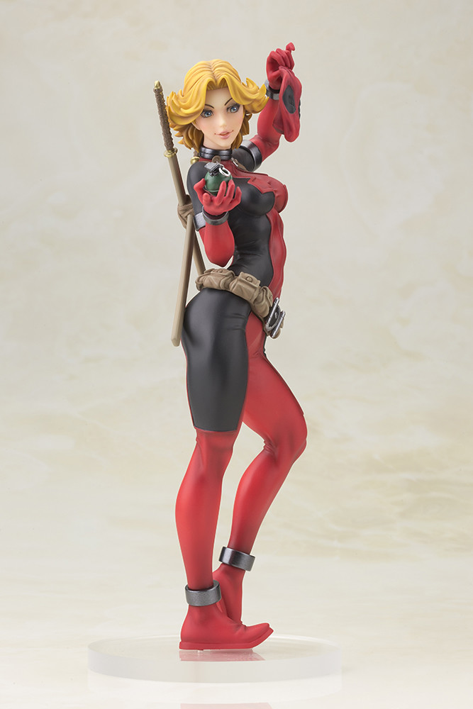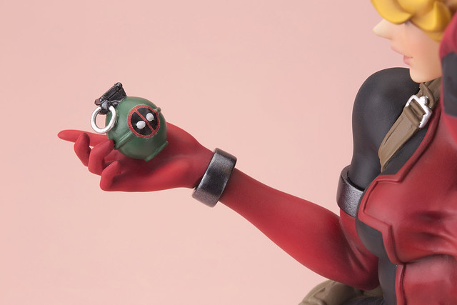 這次所推出的作品,使用了極具死侍性格的俏皮性格來呈現,並且細緻地刻畫了纖細的緊身服細節、性感曲線以及各種配件與服裝造型的細節。除此之外,還將附有替換頭雕與手部零件,可將造型變換為摘下面具,露出美少女真面目的稀有造型!~ 獨特有趣的設計,搭配上真人電影的熱潮,絕對值得各位死侍迷們珍藏!推薦給大家!:D