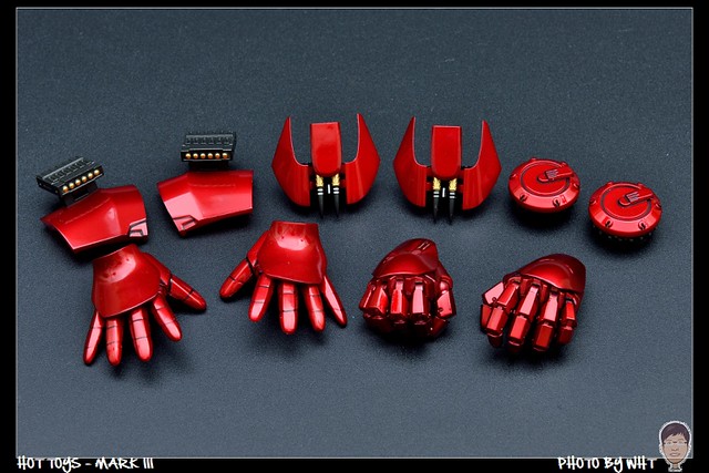 不過說實在話,這隻MK3雖然身形體態相當漂亮,但是其他部分卻是退步。可動來說,依先前幾隻合金版的標準來看,這隻MK3根本完全不及格,廠商用心度,所有機關都改用換件方式呈現,不像舊版MK3都是內建可動機關 (雖然HT已經很久都是這樣了,但同一個型號的鋼鐵人難免還是會一起比較一下)。