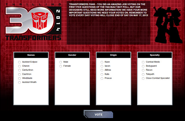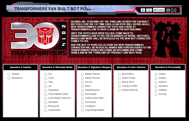 在變形金剛30周年相關活動中,變形金剛官方舉辦了一次 【粉絲的變形金剛 Fan Built Bot】網路票選活動。