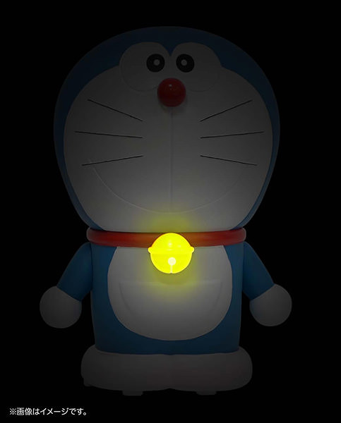 脖子上的鈴鐺也設計成可以隨著音樂節拍有Led燈的發光裝置,尺寸十分巨大有高約40公分,不僅僅是可以當成居家裡面的擺飾也具有音樂撥放的音箱功能等等,雙手的肩膀部位有可動式的設計,可以舉起手來改變姿勢,喜歡《哆啦A夢》的玩具人千萬別錯過囉!!