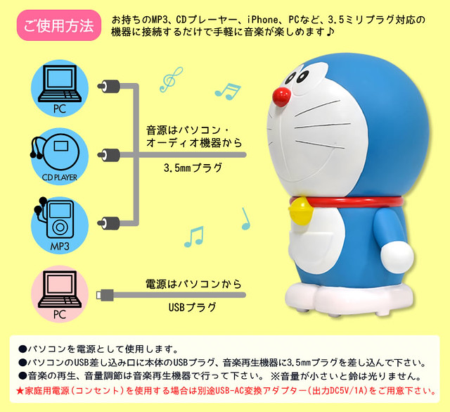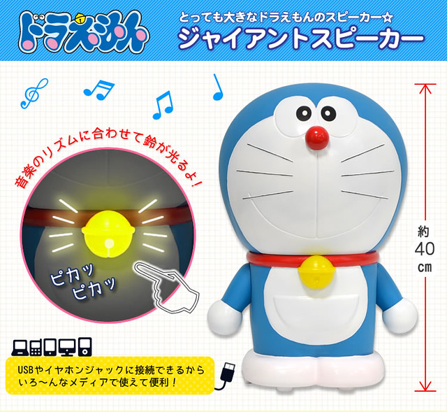 十分受歡迎漫畫角色《哆啦A夢》相關周邊商品已經多到算不出來了,此次預計將推出ドラえもん ジャイアントスピーカー,以哆啦A夢造型來製作的巨型音箱,可以直接連結電腦、MP3、CD PLAYER和手機等等,就可以從底部音響來撥放曲目。