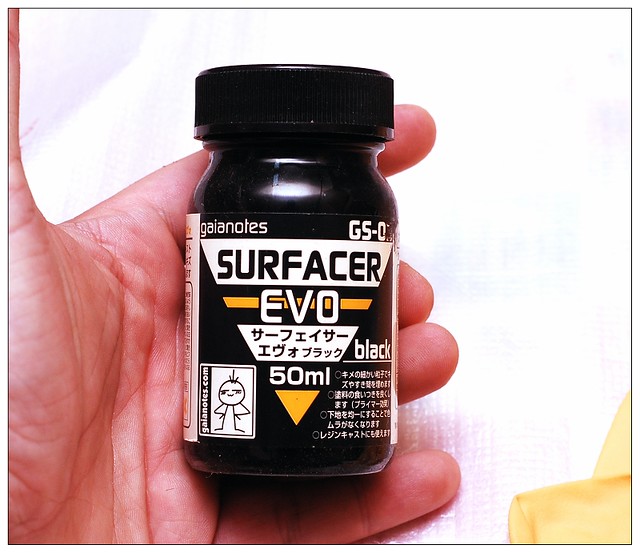 ▼首先打底;由於要上金屬色所以直接使用蓋亞的黑色底漆補土當底