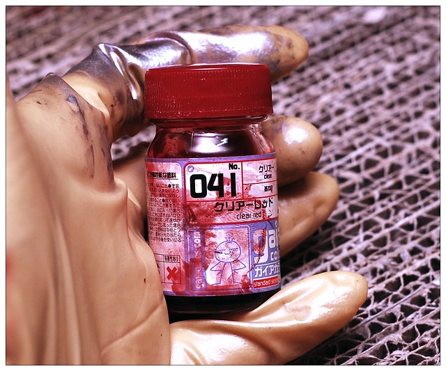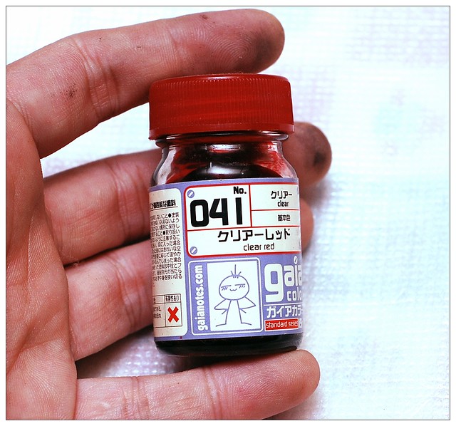 ▼拿出蓋亞透明紅;這瓶記得要稀釋不要買來就直接噴,太濃了XD,比例的話一樣使用1比3就好千萬別要調的太稀不然溶劑比例過多會把底漆洗掉。