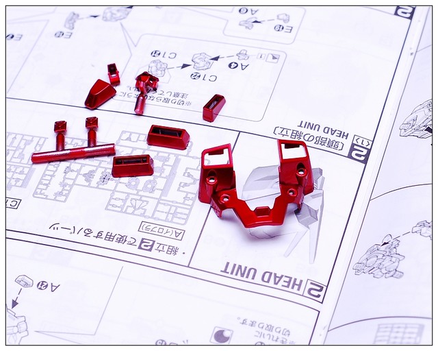 這次的作品主要還是依照以往製作的慣例,骨架上了點金屬色;外裝甲紅色部分使用金屬紅,白色和藍色部分再使用特調消光。墨線的部分直接用鋼彈自動鉛筆去劃。送上製作全記錄希望大家會喜歡~