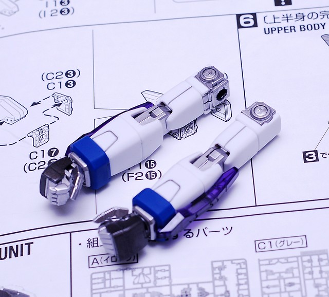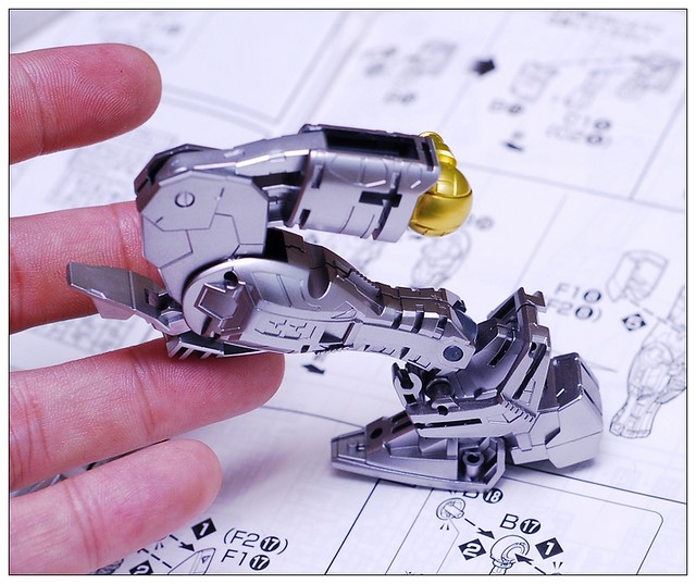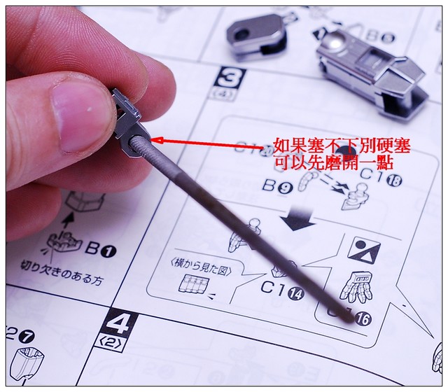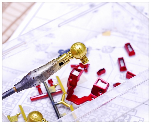 ▼再來是手臂的組裝;噴完漆後偶爾會碰到一個情況就是關節組裝處卡漆,這情況基本上千萬不要硬塞不然零件會崩掉裂開,建議可以使用銼刀稍微的把洞口打磨一下,打磨後再使用凡士林潤滑就可以很輕鬆的裝進去了。