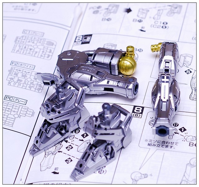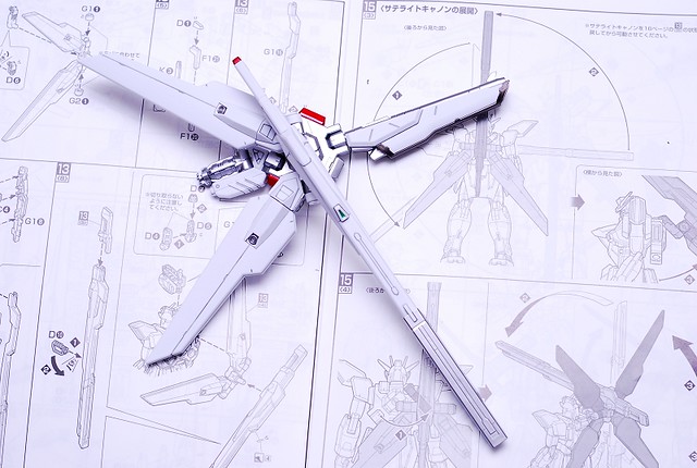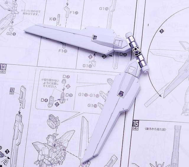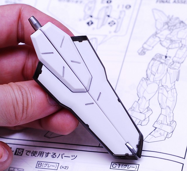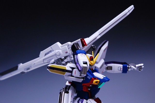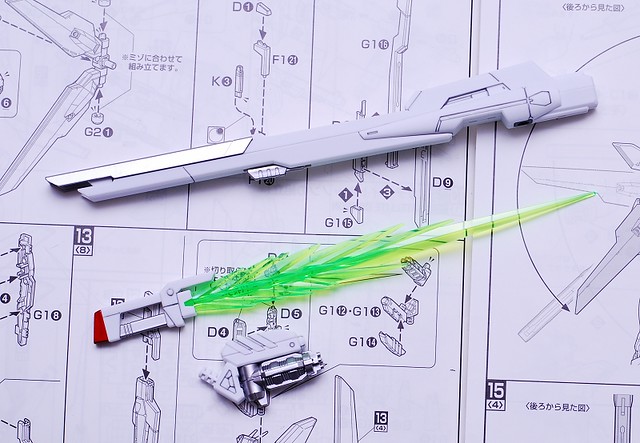 ▼現在的鋼普拉好像都可以很簡單的做出這種拔劍的動作;我很喜歡這台武器的設計,劍的握把直接再月光砲的槍托XD