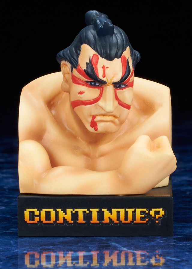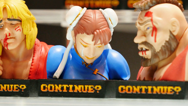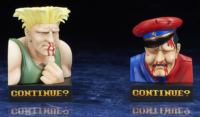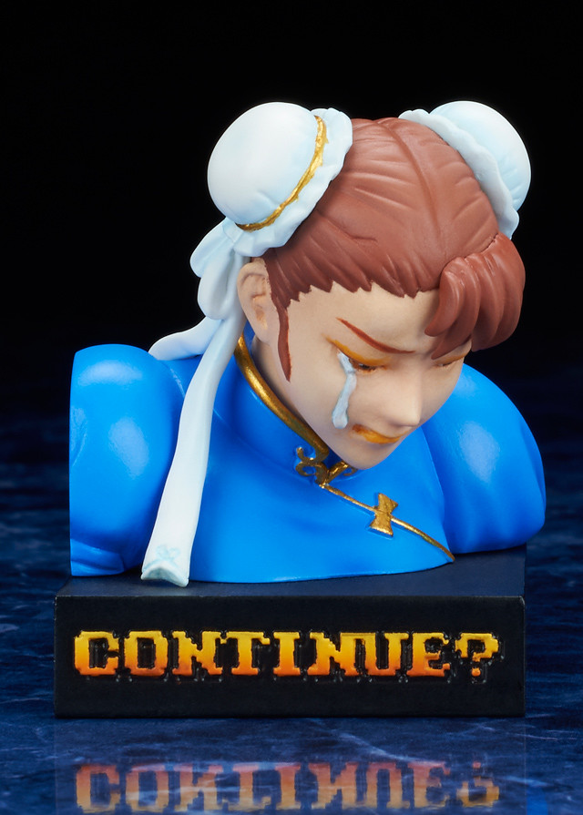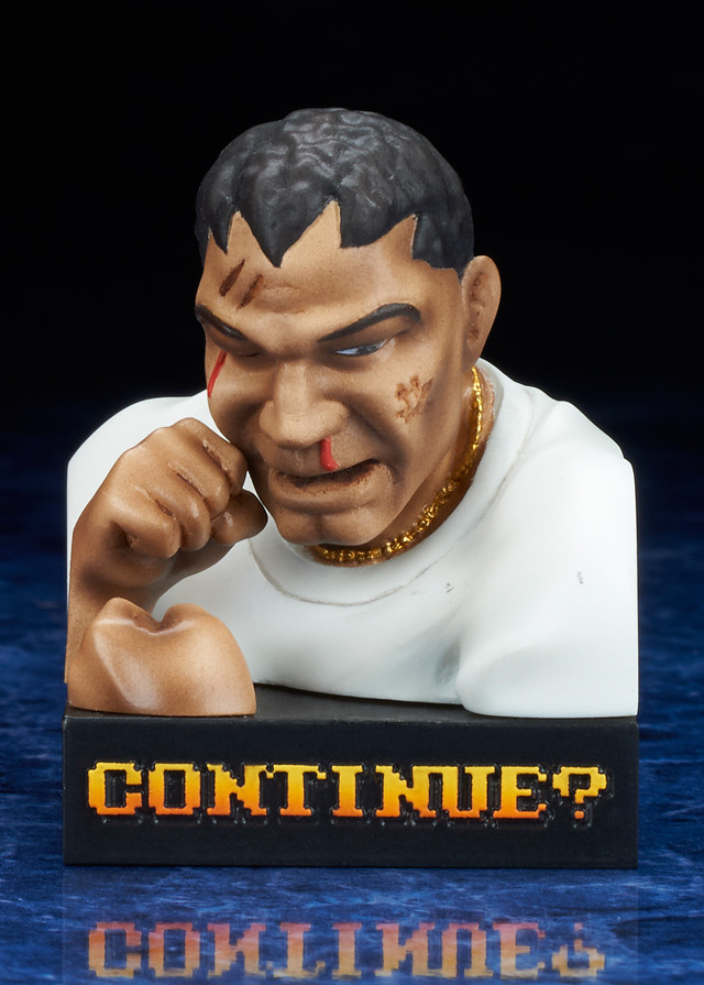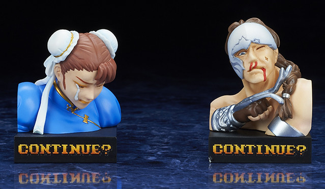 這一款作品搶先於Wonder Festival 展出,是以經典的《快打旋風2》,玩家操縱角色輸了之後,鼻青臉腫等著接關倒數的魯蛇(Loser)臉來立體化。將收錄了快打旋風中經典的8位主角與4大天王,以精湛的原型技術,將原本的圖像完全立體化~ 並且在底座上加了經典的“continue?”(接關?)字樣作為裝飾。每一款造型都相當地生動有趣,不僅令人回想起以前的許多經典回憶,還有著莫名的療癒感啊~XD