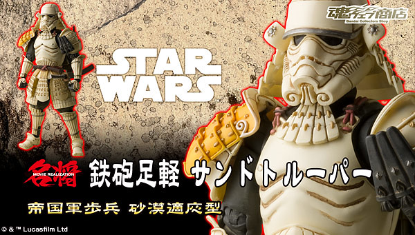 日BANDAI萬代玩具公司的「名將Movie Realization」系列將電影《星際大戰》當中經典角色融合日式戰國時代風格,再由「竹谷隆之」大師所設計造型,繼推出侍大將 達斯‧維德、步兵 帝國暴風兵和浪人波巴・費特後,將在推出鉄砲足軽サンドトルーパー 鐵砲足輕 沙漠騎兵(暫時翻譯)。