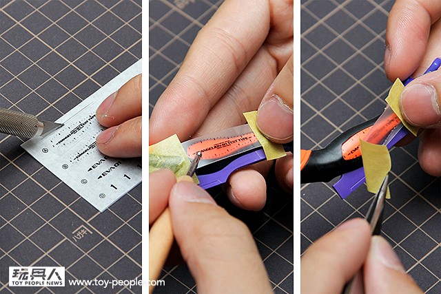 ▼ 貼紙黏貼篇。由於動畫之中會有許多細節設定是由多種顏色所組成,零件分色沒有辦法完全表達,所以貼紙就是用來完成這一部分的細節。