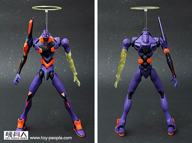 完工之後,當然少不了定番的正面跟背面照!正面照完全暴露出初號機的暴力氣息,特別是覺醒後的殘酷天使,頭頂上當然要有光環阿!而背面照的背部曲線更是特別迷人。